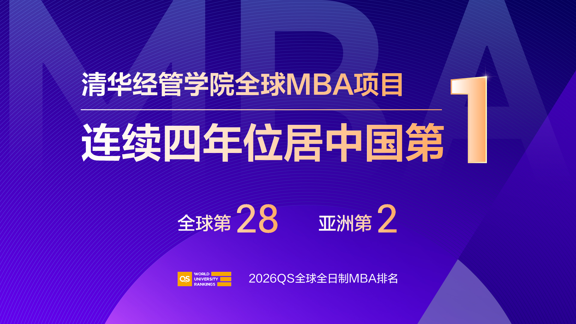 在2025年9月17日公布的2026QS全球全日制MBA项目排名中,清华大学经济管理学院连续四年位居中国第一,在全球389个院校中位列第28,亚洲第2。其中,经管学院在多个排名关键指标中表现优异,在思想领导力(Thought Leadership)指标排名全球第14,连续四年蝉联亚洲第1;在投资回报(Return on Investment)指标排名全球第24,亚洲第1。作为清华大学最早的全英文硕士项目,自1997年与麻省理工学院(MIT)深度合作以来,一直致力于培...