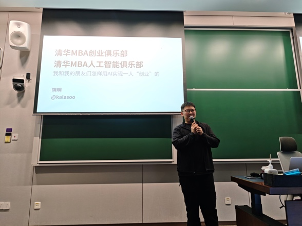 学期伊始,清华MBA创业俱乐部与清华MBA人工智能俱乐部共同组织了AI新势力第四期活动,举办线下工作坊分享了《我和我的朋友是如何通过AI实践一人“创业”的》,本次活动邀请了掘金开发者社区创始人阴明老师,他自2025年起践行AI一人公司,结合自己的实际案例和个人思考,深入浅出地进行讲解。
