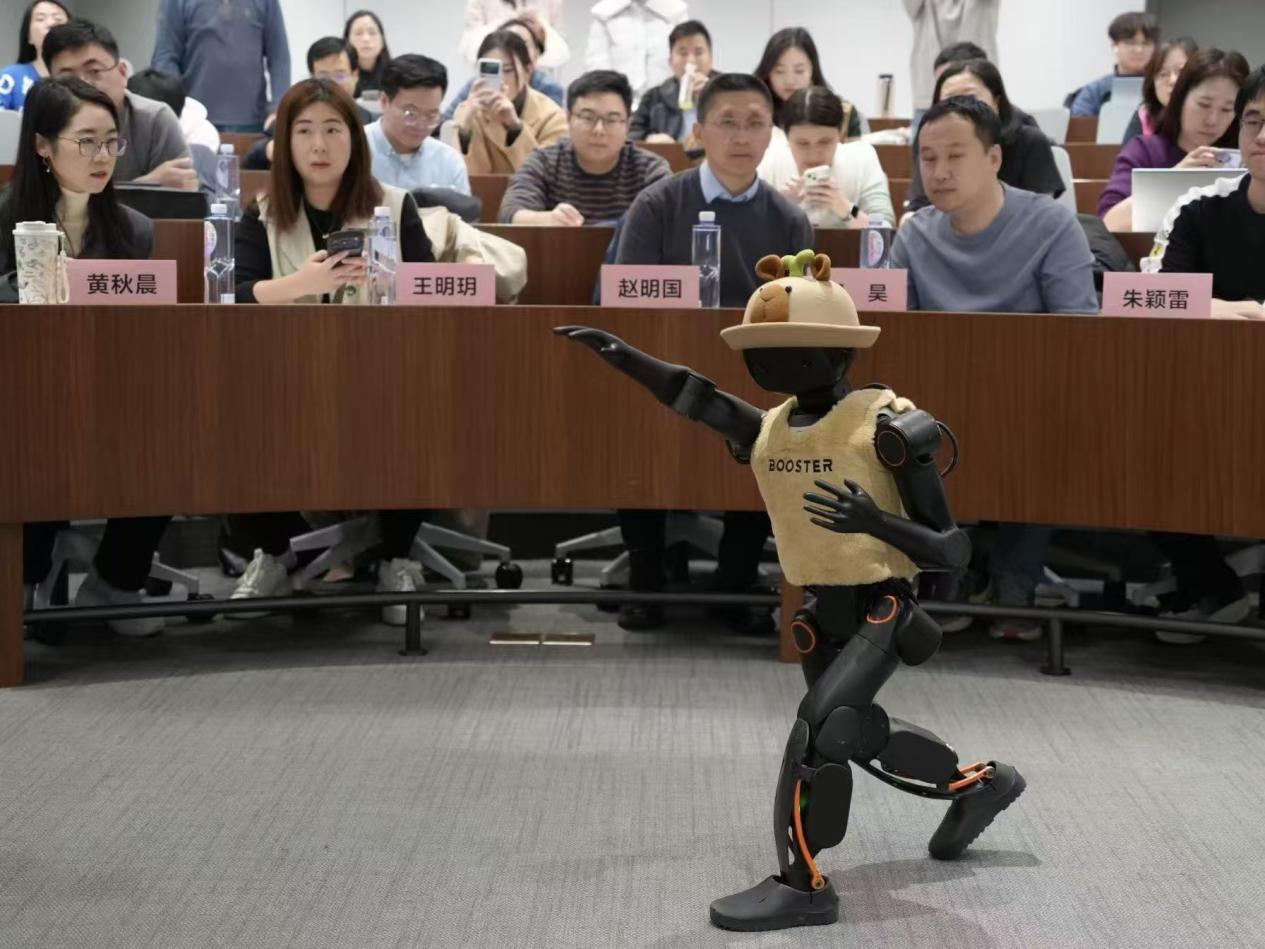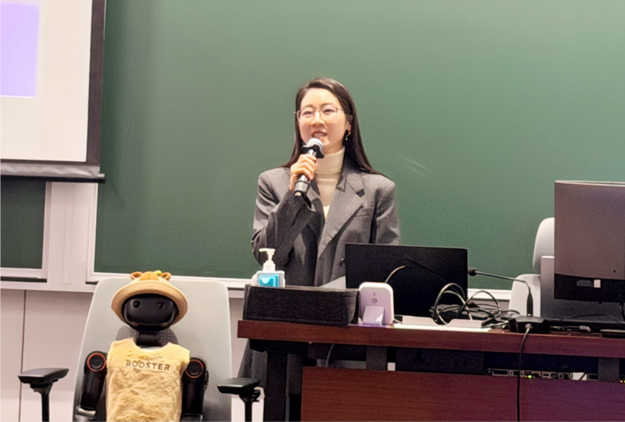 在精彩的分享之后,现场同学与嘉宾围绕技术突破、创业方向等议题展开深入交流。最引人注目的环节当属booster K1机器人的现场互动,同学们近距离体验其精巧构造与灵活动作,切身感受“科技照进现实”的震撼。