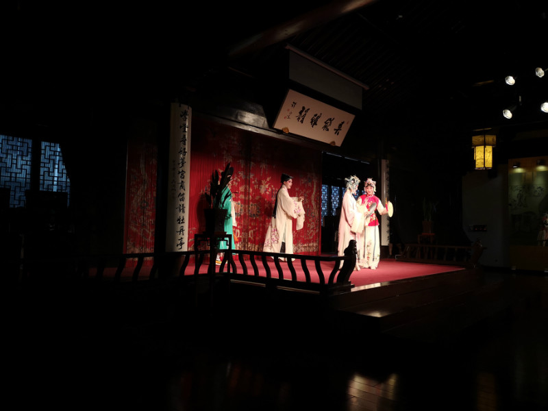 在乘车前往位于苏州市姑苏区校场桥路途中,天气转阴,小雨开始淅淅沥沥。在一片江南烟雨中,同学们沿着一径青石小路,踏进一处闲庭深院,这就是昆曲传习所。在这所近百年前创建、如今修葺一新的专业昆曲学堂里,同学们亲见昆曲传习的空间展示,包括拍曲、化妆、服装、厅堂剧演的生动场景;感受昆曲学堂教育的传承方式;领悟昆曲演出婉约、典雅、清丽的艺术表现魅力,特别体会到实景版“游园惊梦”结合诗、曲、舞、戏于一体的传统文化内涵与古典艺术境界。“雨丝风片,烟波画船,锦屏人忒看的这韶光贱”,此刻,同学们足可意会经典剧作《牡丹亭》的华丽文辞,更仿佛闻得旦角杜丽娘“不到园林,怎知春色如许”的婉转念白,字字拨动心弦。真可谓是,微澜浮翠,写尽梦长;亭台水榭,书满春芳。