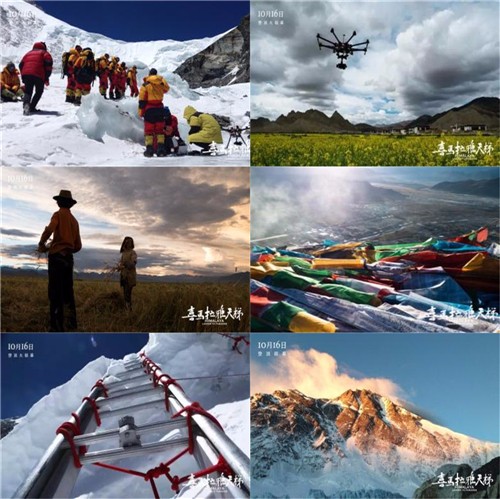 珠峰顶端的拍摄就是通过轨道拍摄出来的,而非航拍。“提前两个月请了当地登山队的优秀向导,把他们培养成‘摄影师’,”郭伟松笑说,把摄影师培养成登顶队员相对来说更难,人员安全是不得不考虑的重要因素。当地登山队的部分向导在2008年奥运火炬手登珠峰顶时的直播现场,已经有了初步的拍摄经验,也为这次的拍摄奠定了一定的基础。